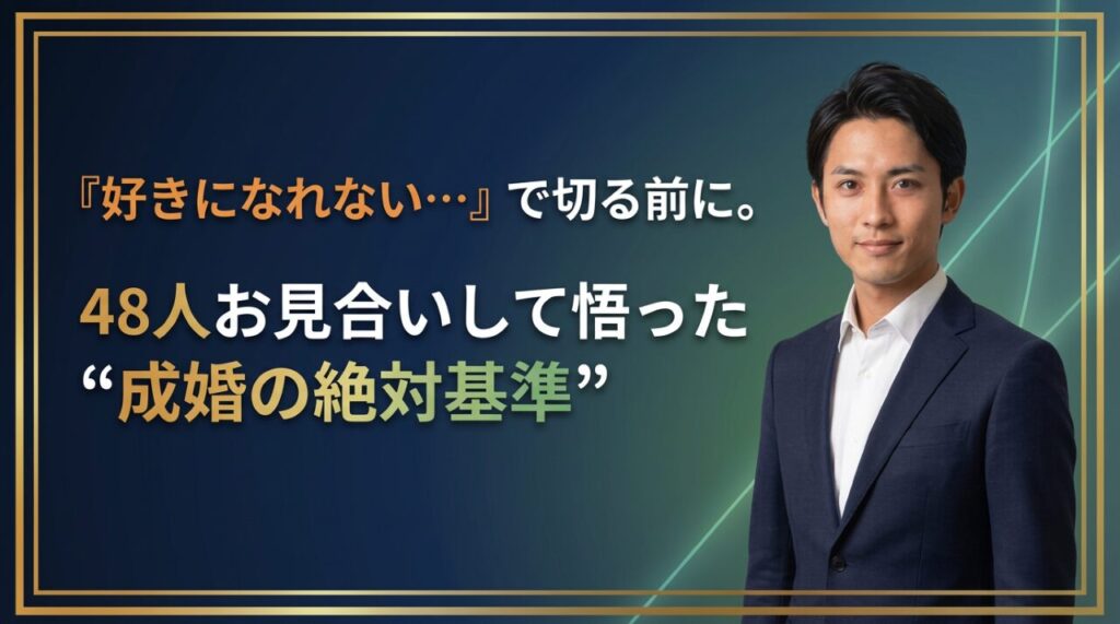 仮交際で「好きになれない」と悩むあなたへ。48人お見合いして悟った、恋愛感情を横に置く「成婚の絶対基準」