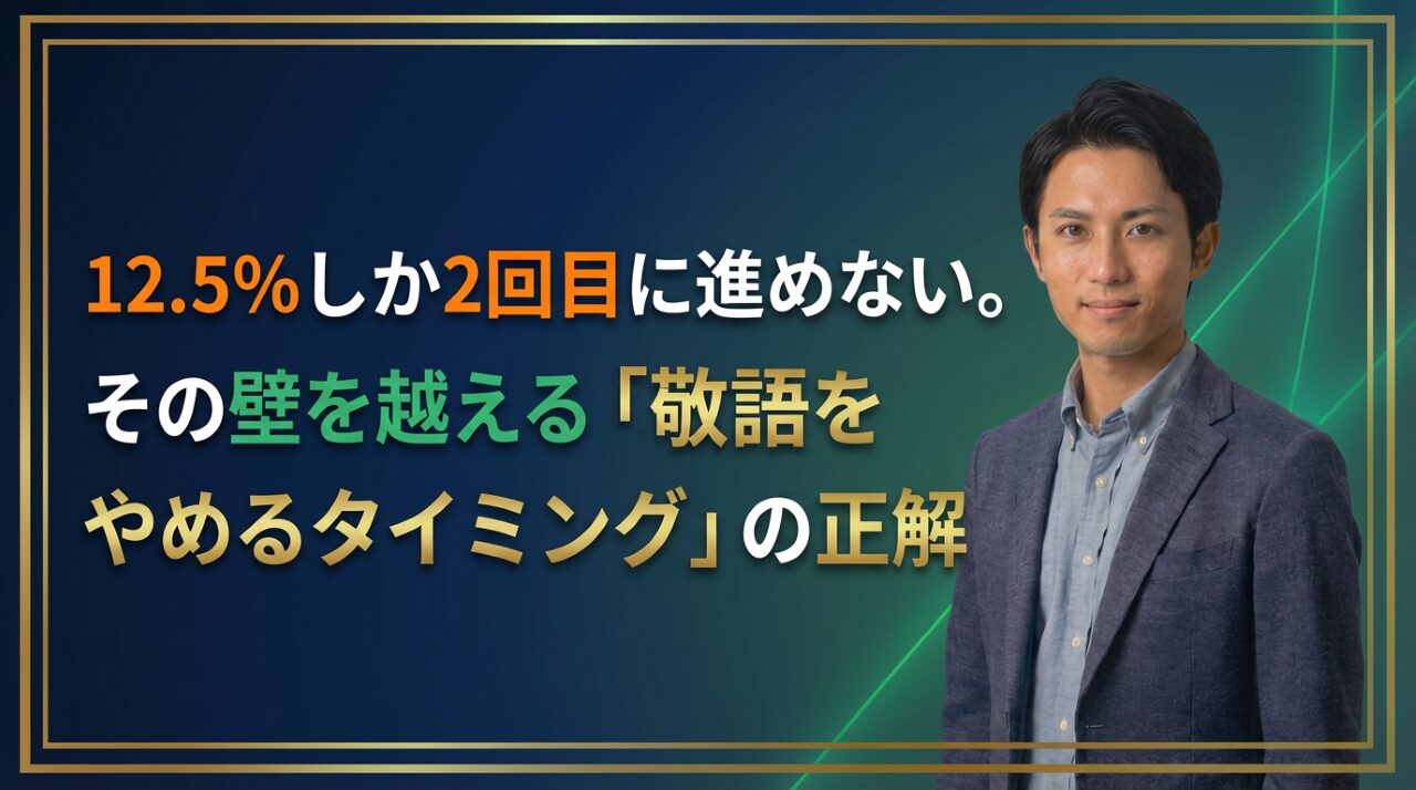 「いつ敬語をやめればいいのか」という出口のない悩みから、今日で解放されます。 48人のデータと成婚という結果から導き出した、相手の心にスッと入り込む「無痛の距離の詰め方」を伝授します。