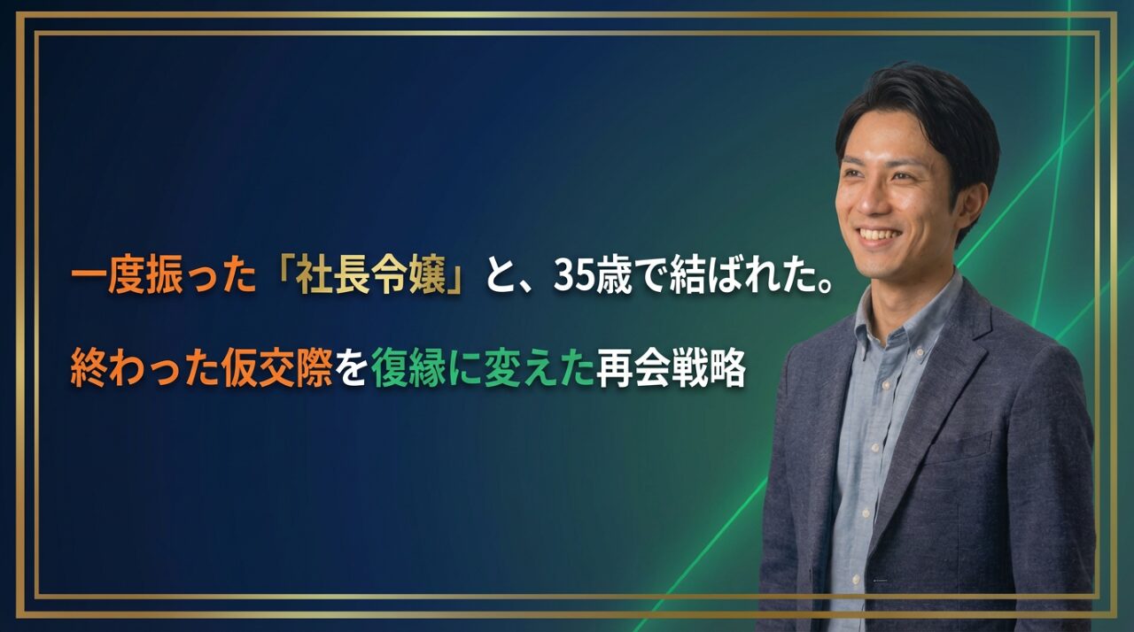 僕の知人である35歳の男性は、自ら仮交際終了を告げた「社長令嬢」と、数ヶ月の空白期間を経て電撃復縁。周囲の予想を鮮やかに裏切り、見事に成婚退会を果たしました。