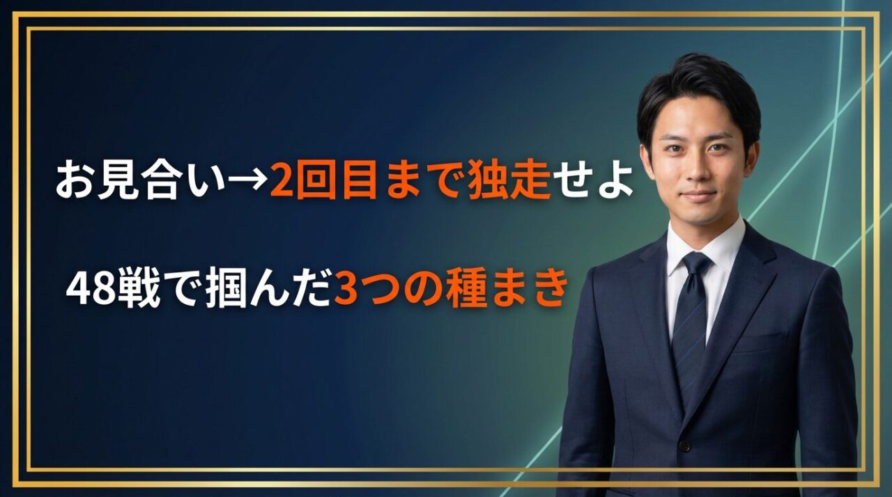 この記事では、僕が48戦の失敗から学び、成婚へと導いてくれた**「お見合いから仮交際2回目まで独走するための3つの生存戦略」**を公開します。