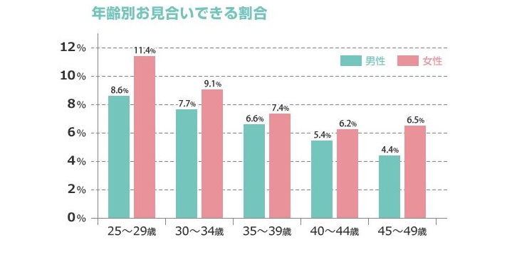 過去の「お見合い依頼の快諾率」調査によると、お見合いの平均成立率はわずか6.6%です。