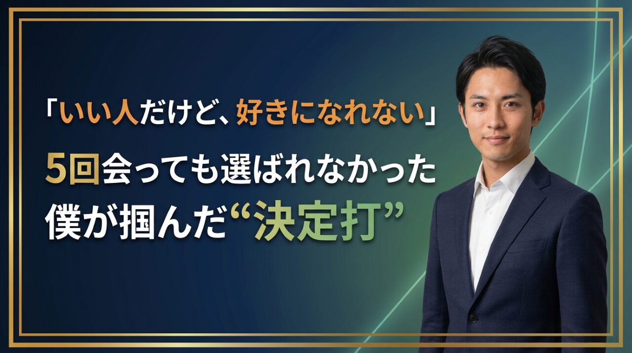 「5回会えばなんとかなる」という根拠のない期待が、いかにチャンスを逃しているか。その執着から解放され、1回1回のデートを「心を動かす真剣勝負」として捉え直す覚悟が定まります。