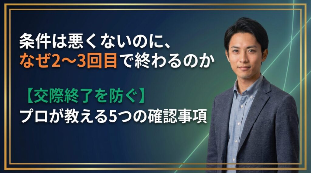 「条件は悪くないはずなのに、なぜか2〜3回目のデートで終わってしまう……」 「お店も予約したし、ご馳走もしている。それなのに、なぜ『お断り』が届くんだ?」 そんな出口の見えない暗闇の中で、独り頭を抱えていませんか?かつての僕も、まさにその場所... -
