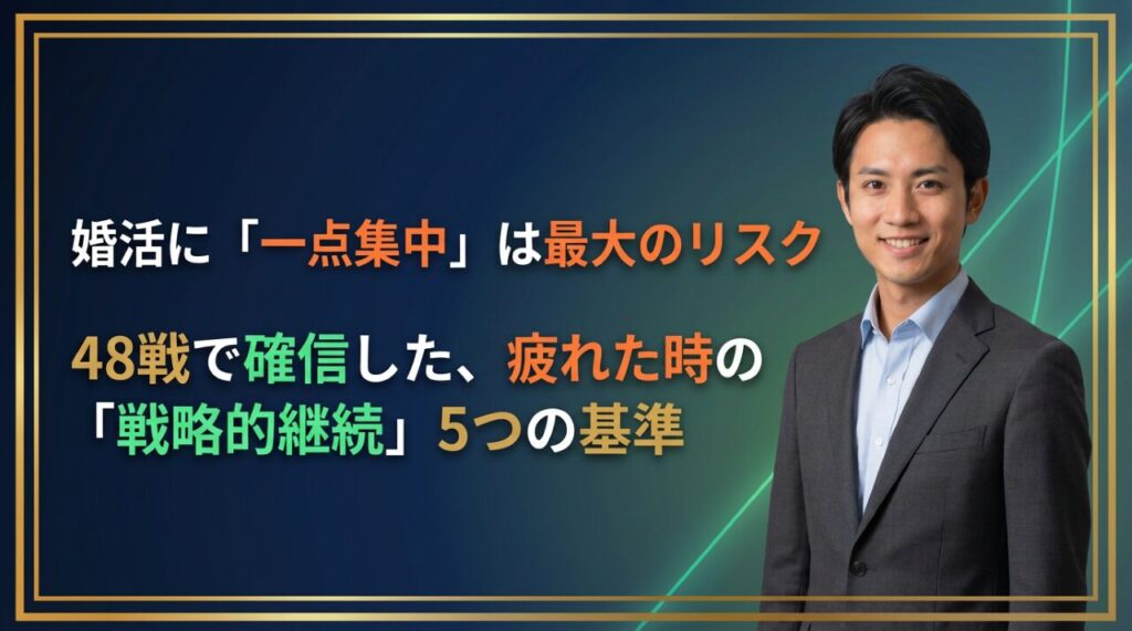 「またお断りか……自分は欠陥品なんじゃないか?」 お見合い48戦の道中、僕も何度もこの闇に飲み込まれ、スマホを投げ捨てたくなりました。 ネットを見れば「疲れたら休め」という耳障りのいい言葉が溢れています。でも、いざ休もうとすると「このままフェ...