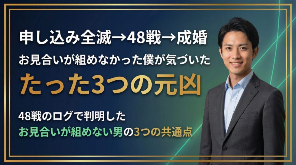 「お見合いのプレッシャーで、もう心が折れそうだ……」 「でも、ここで足を止めたら一生独身かもしれない」 結婚相談所(IBJ)での活動に疲れ果てたとき、多くの人が「歯を食いしばって続けるか、いっそ休会するか」の二択で悩みます。 しかし、48人とお見... -