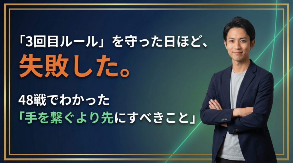 「仮交際のデートも3回目。教本通り、そろそろ手を繋ぐべき?」 「でも、もし拒絶されて嫌われたら……。お相手の反応が読めなくて怖い」 婚活の教科書を開けば、必ずと言っていいほど「3回目デートで手を繋ぐべし」と書かれています。しかし、かつて48戦の... -